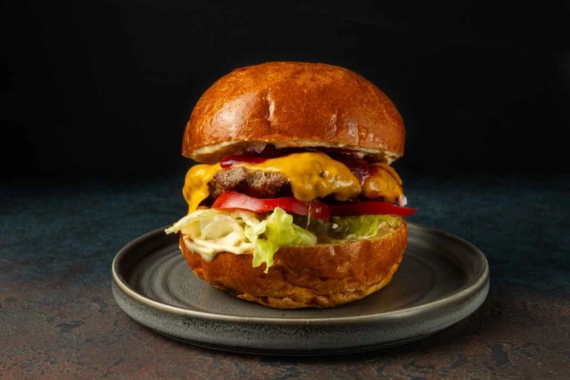 булочка, свежие овощи, котлета из мраморной говядины, вишня BBQ