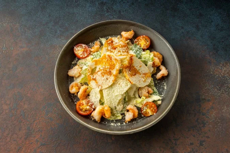 Салат цезарь с креветками
