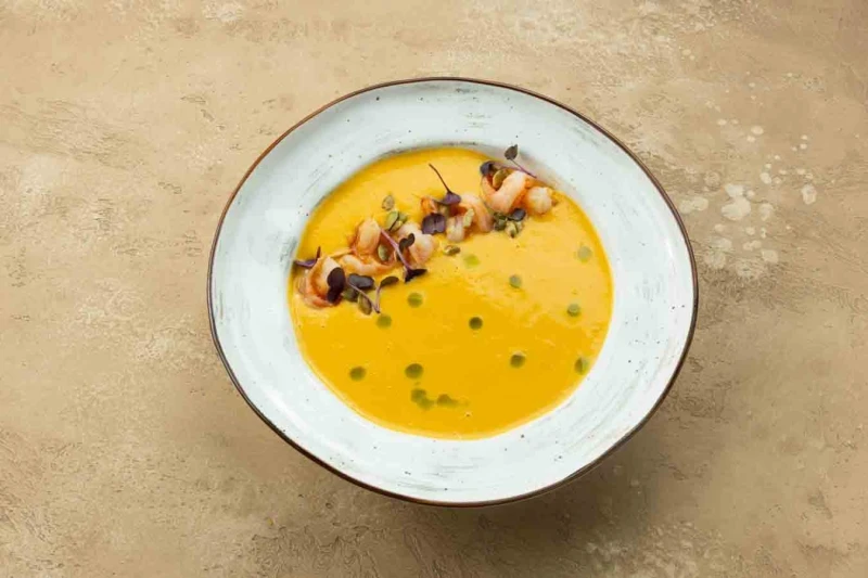 тыква, сливки, креветка, вяленые томаты, сыр чеддер