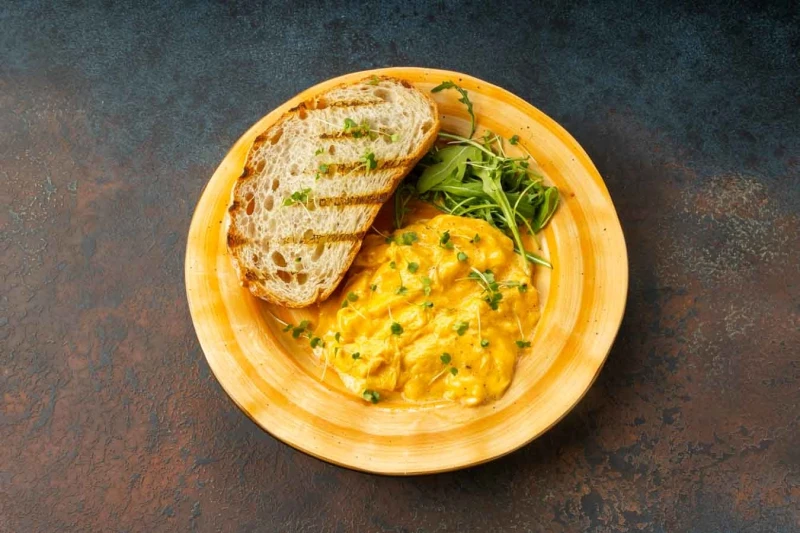 яйца куриные, соус томатный, овощи, зелень, хлеб тартин